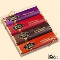These delicious 1.5 oz candy bars are made with smooth, rich See's chocolate. Our candy bars are perfect treats to pack for lunch, keep at your desk or share with the office. Buy several to keep on hand when you need that special last minute gift for any occasion. Available in four flavors - Milk Chocolate, Milk Chocolate with Almonds, Milk Chocolate with Toffee Nuggets or Dark Chocolate with Almonds - there is something everyone will love. Attractively packaged in a clear box and finished with a gold bow, there are 4 - 1.5 oz. bars in each pack.