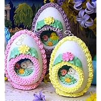Easter Panoramic Sugar Eggs is an elegant old time classic that is hand crafted with a panoramic design inside the 4 ounce upright sugar egg. Each egg is hand decorated with an exquisite icing design and comes in its own window gift box.