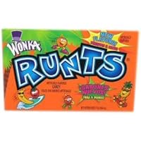 Runts candy (sometimes called Fruit Runts) are sold by Nestl under their famous Willy Wonka Candy Company brand name. Runts first appeared on the market in 1982. They are fruit flavored and fruit shaped candies.